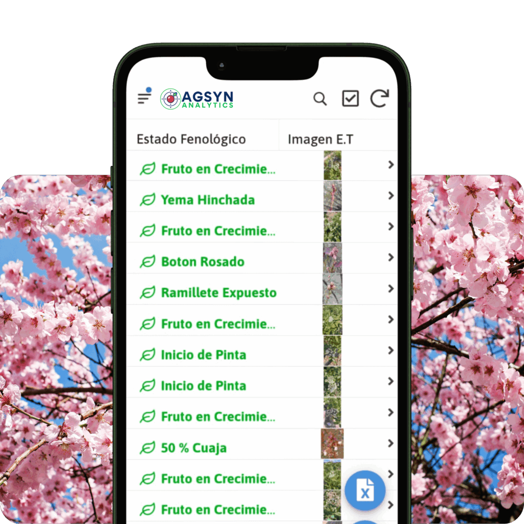 Monitorea cada etapa, desde las yemas hasta los frutos maduros, utilizando datos en tiempo real que optimizan la planificación y aumentan tu productividad.